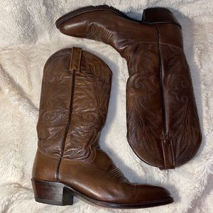 Vintage Dan Post Brown Leather Men’s Cowboy Western Pull On Boots