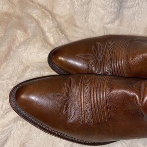 Gorgeous vintage Dan post western leather boots. Sz 9. Excellent pre owned condition. Except for one small mark on side left boot. See pix. It does not go all way thru boot. Smoke free home.