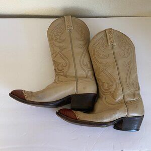 Vintage Dan Post Cream Leather Lizard Toe Western Boots Size 11 Cowgirl
