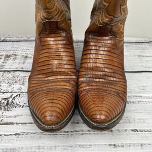 Vintage Dan Post Exotic Genuine Teju Lizard Western Cowboy Boots 8 D USA MADE