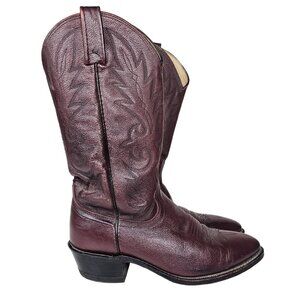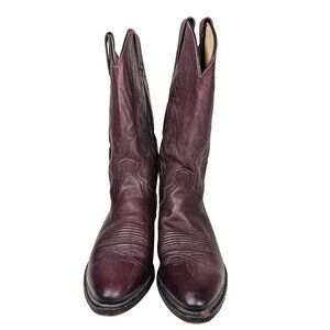 Vintage Dan Post Leather Western Cowboy Boots Burgundy Embroidered Men's 8.5D