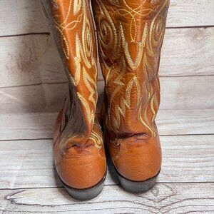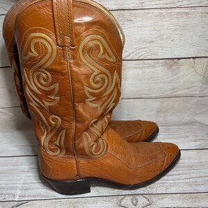 Vintage Dan Post Lizard Leather Ostritch Toe Cowboy Boots Size 9.5 D Round Toe