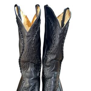 Vintage Dan Post Men's Black Leather Boots Deertan Cowboy Western USA Sz 11 EW