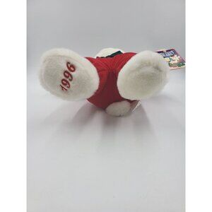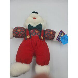 Vintage DanDee 1996 Holiday Bear 15" White Red Cap Overalls Christmas Plush