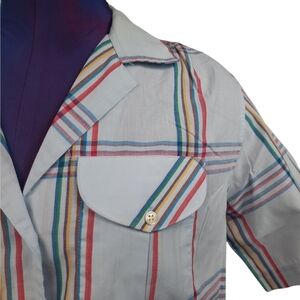 Vintage Dana Alexander Rainbow Plaid Short Sleeve Button Down Size 8 Women's.