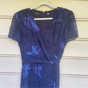 Vintage Dana Buchman 100% Silk Short Sleeve Wrap Midi Dress Dark Blue 16