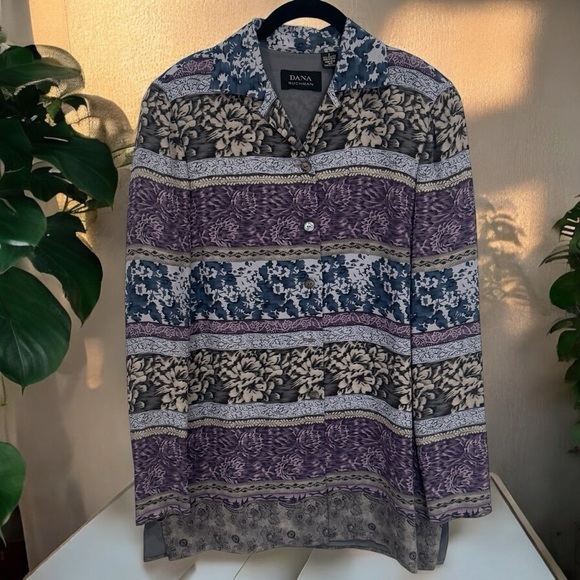Vintage Dana Buchman Floral Long Sleeve 100% Silk Long Sleeve Blouse Size 2