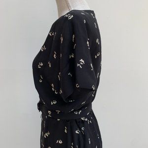 Vintage black silk dress with ditsy floral and flutter skirt. Sort of 90s does 40s. Such a sweet piece 🤗