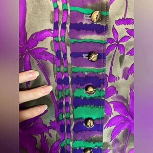 Vintage Dana Buchman Silk Tropical Print Long Sleeve Shirt Size 6 Purple