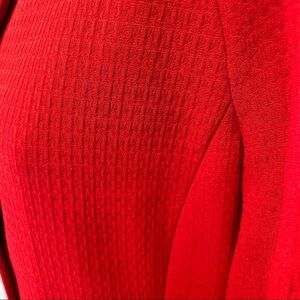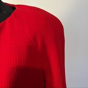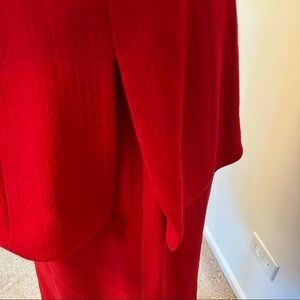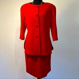 Vintage Dana Buchman red 2-piece skirt suit, front button. Size 10P