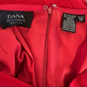 Vintage Dana Buchman beautiful 55%wool red 2-piece skirt suit, 3/4 sleeves, front button. Size 10P. Suit is in excellent condition.