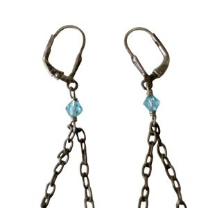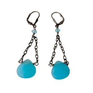The vibrant blue chalcedony stones catch the light beautifully, while the oxidized sterling silver chains add depth and contrast. These earrings are lightweight, secure, and comfortable for all-day wear.