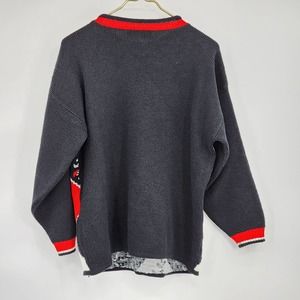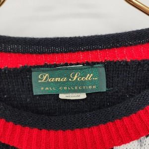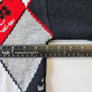Vintage Dana Scott Argyle Red Floral Multipattern Chunky Knit Grandma Sweater