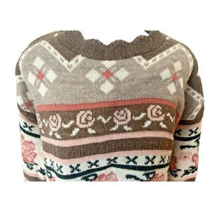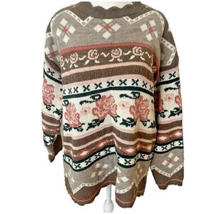 Vintage Dana Scott Floral Cottage Grandma Core Knitted Pullover Winter Sweater