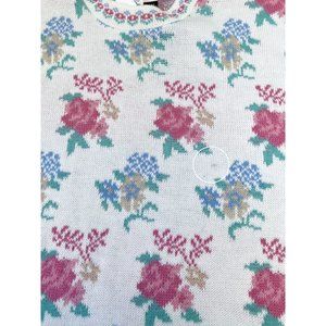 Vintage Dana Scott Floral Mockneck Tunic White Pink Sweater | Size Medium