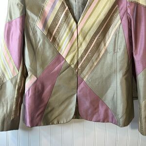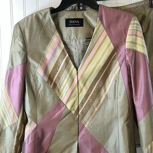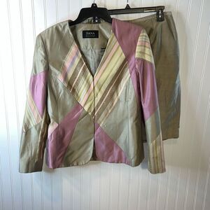 Vintage Dana Buchman Silk Blend Skirt Suit Womens Size 12 Tan Multicolor Office