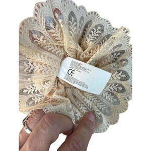 Vintage Dandee Victorian Porcelain Head Doll Cream Christmas Ornament Brown Hair