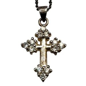 Vintage Danecraft 925 Sterling Silver Cross Necklace With Cubic Zirconia A73