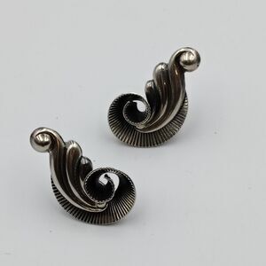 Vintage Danecraft Sterling Silver 925 Art Deco Floral Motif Screw Back Earrings