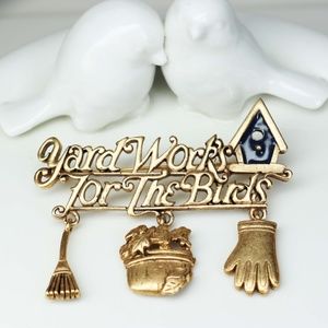 Vintage Danecraft Yard Work's For The Birds Brooch