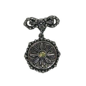 Vintage Dangle Brooch Pin Women's OS Silver-Tone Aurora Borealis Rhinestone Medallion Bow