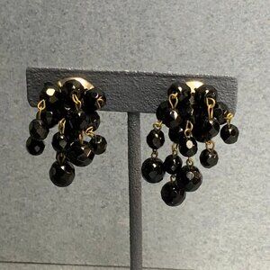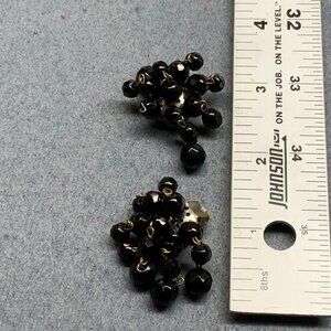 Vintage Dangle Clip Earrings 1.5 In As Is Black Cluster Faceted Glass Beads Glam