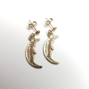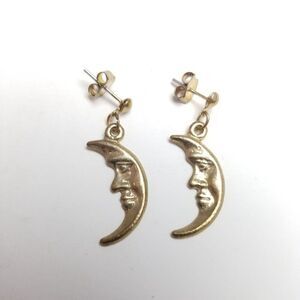 Vintage Dangle Crescent Moon Shaped Earrings, Gold Tone Drops, Estate