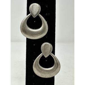 Vintage Dangle Drop Earrings Silver Tone Metal Teardrop Shaped
