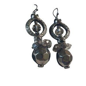 Vintage Dangle Earrings Crystal Accents Acrylic Beads Silver Finish Hook Formal