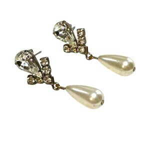 Vintage Dangle Earrings Faux Pearl Rhinestone Accent
