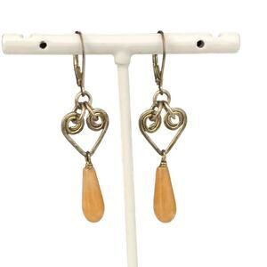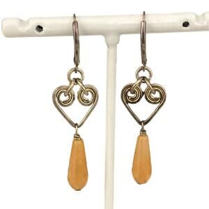 Vintage Dangle Earrings Silver Scroll Peach Drop