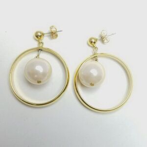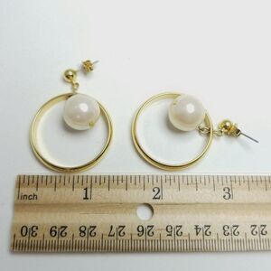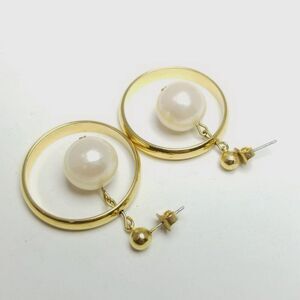Vintage Dangle Faux Pearl Hoop Earrings, Gold Tone, Stud, Unsigned Estate