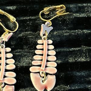 These vintage dangling articulated enamel fish clip-on earrings are a unique and colorful addition to any jewelry collection. The pink and teal colors add a playful touch, while the hanging fish design adds a touch of whimsy. Perfect for a variety of occasions from anniversaries to birthdays, these earrings are sure to make a statement. The retro design and huggie style make them a standout piece for those who appreciate unique and eye-catching accessories. Made of enamel on metal, these earrings are not only stylish but also durable for long-lasting wear.