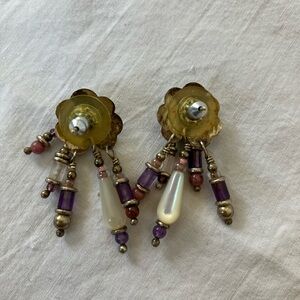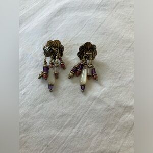 Vintage Dangling Silver Tone & Purple Beaded Earrings