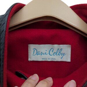 Vintage Dani Colby 80% Wool Blend Cape Coat With Black Genuine Red Leather Trim