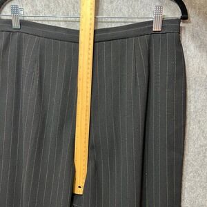 Keywords: Dani Max, pinstripe pants, dress pants, elastic waist pants, pull on pants, career pants, work pants, straight leg pants, black pants, size 12M, womens pants, business casual, office wear, professional attire