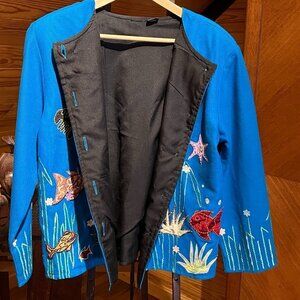 Vintage Daniel K Wearable Art Under the Sea Life Blazer Jacket Teal Blue
