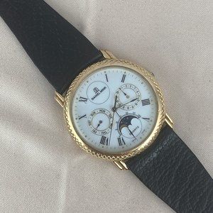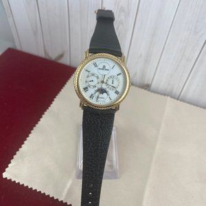 Vintage Daniel Mink Designer Gold Engraved Swiss Made Moon Phase Watch