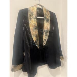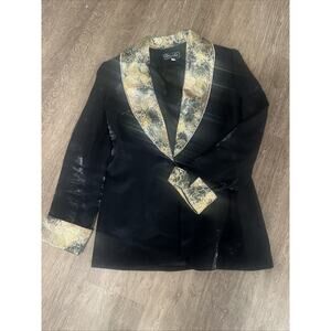 Vintage Daniela Neicy's Black Gold Statement Blazer Floral Rhinestones Size 12