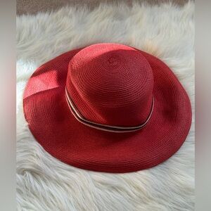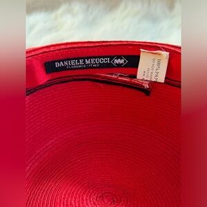 Vintage Daniele Meucci Red Stripes 100% paper straw hat Made in Italy Wide Brim