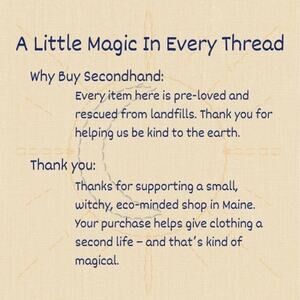 Thank you for supporting sustainable fashion and giving pre-loved pieces new life. Every order ships with care and a touch of everyday magic.