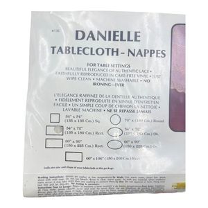 Add a charming touch to your dining room with this vintage-inspired tablecloth from danielle. Measuring 54" x 72" and made of high-quality Vinyl, this tablecloth features an antique-style crocheted pattern with beautiful floral embroidery that is sure to impress your guests. The beige color adds a classic touch to any room, making it perfect for both formal and informal occasions.
