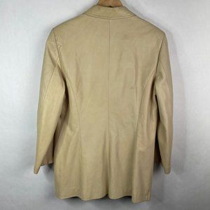 Vintage Danier 100% Genuine Leather Blazer Button Down Jacket Y2K Beige Tan