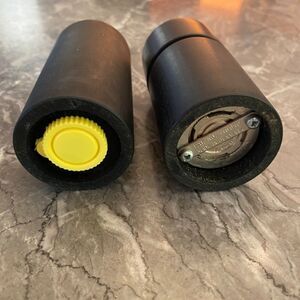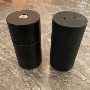 Vintage Danish Modern Salt Shaker and Pepper Grinder Black Wood Cylinders