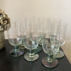Vintage Dansk Genna Green Water Goblet Set of 9 Stemware Iridescent Green Clear
