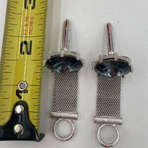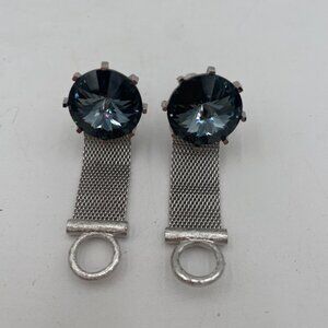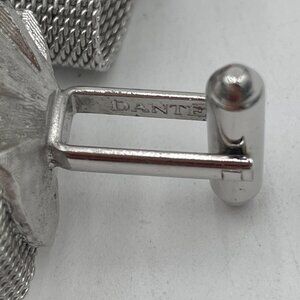 Vintage Dante Silver-Tone Cufflinks With Blue Rhinestones & Mesh Chain Design
