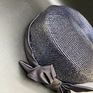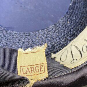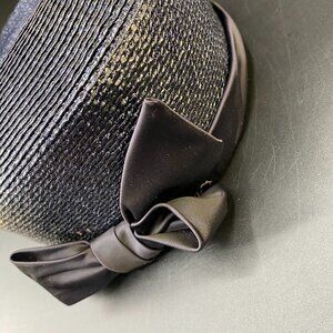 Vintage Darcel Pill Box Straw Hat Large Ribbon Trim Black Made in VTG USA