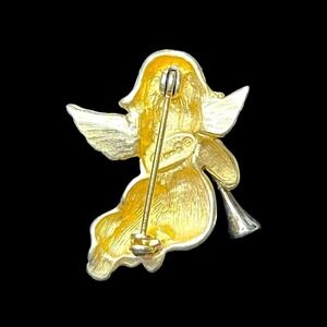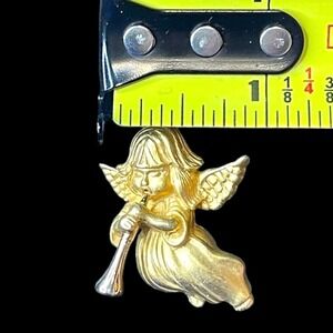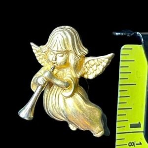 Add a touch of timeless beauty to any outfit with this vintage Daria Gold Tone Musical Angel Pin. It is in good preowned vintage condition with gentle wear.