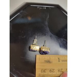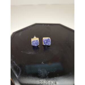 In great condition vintage dark blue geode looking earrings with a gold tone setting.