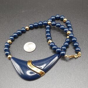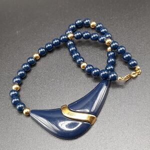 *Description: Great vintage Napier dark blue Lucite bead and pendant necklace. Light in weight with dark blue and gold tone beads. Spring ring clasp. This would be a great addition to your jewelry collection or make a great gift!